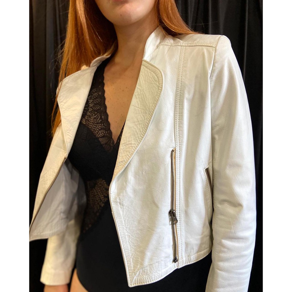 Jaqueta branca clearance de couro feminina